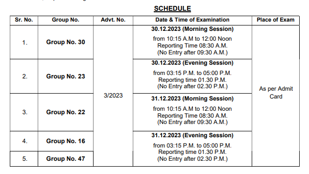 (Saturday) और 31.12.2023 (Sunday) विज्ञापन के विरुद्ध समूह संख्या 16, 22, 23, 30 और 47 के तहत सभी श्रेणियों के लिए।